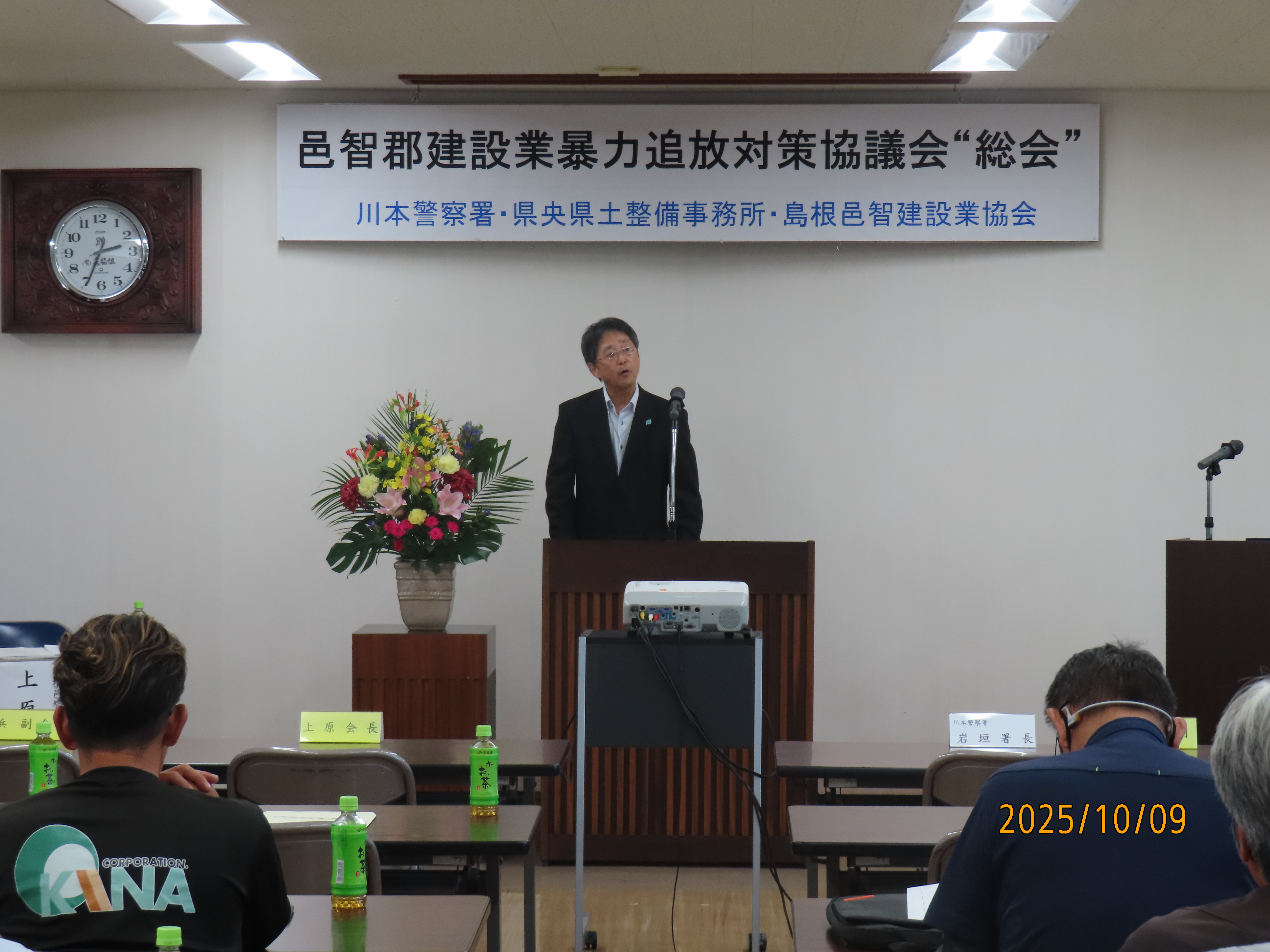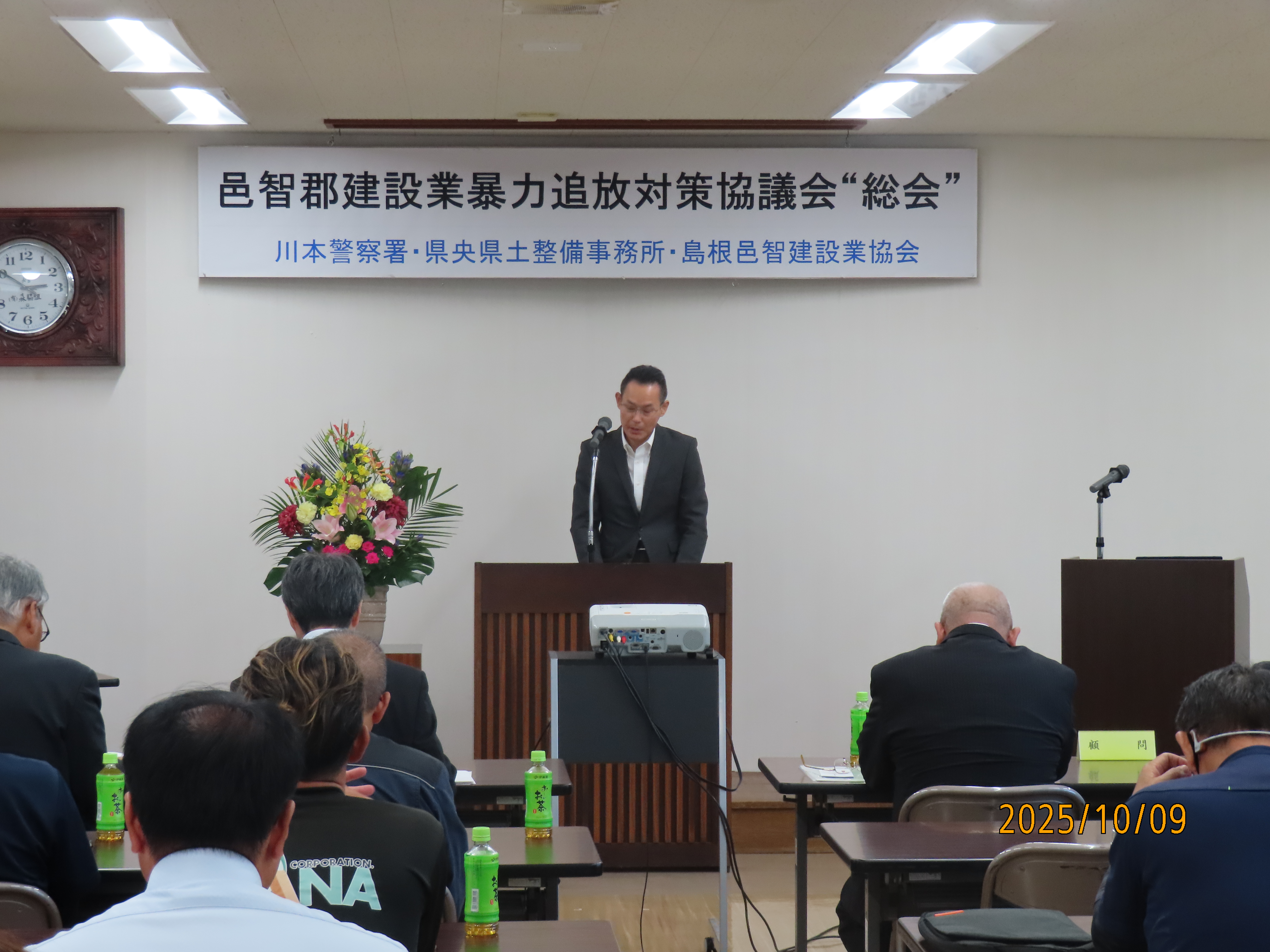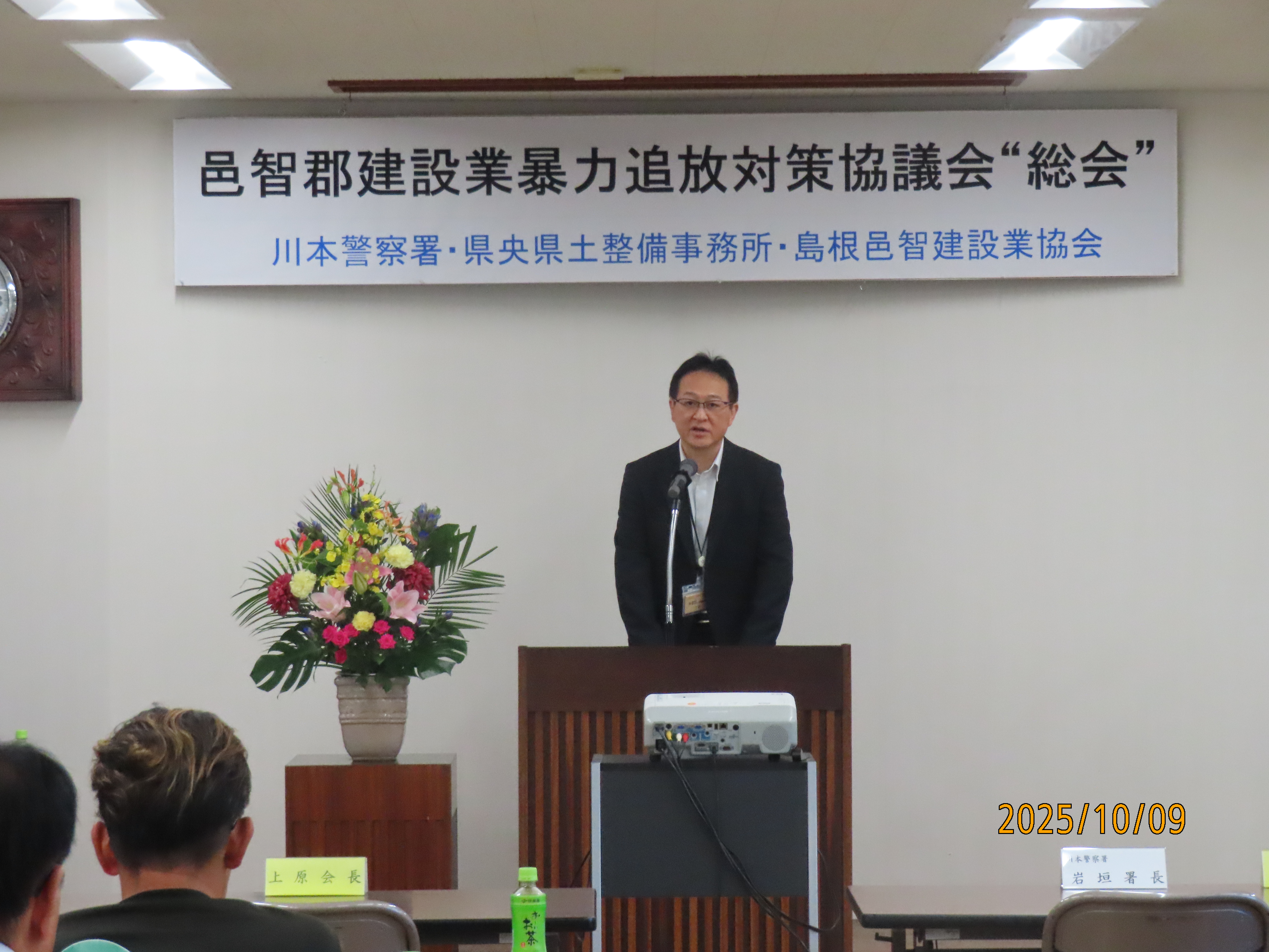 島根邑智建設業協会(上原会長以下会員32社)と川本警察署と県央県土整備事務所で組織しております『邑智郡建設業暴力追放対策協議会』では、先般10月9日に邑智建設会館において令和7年度総会を開催致しました。