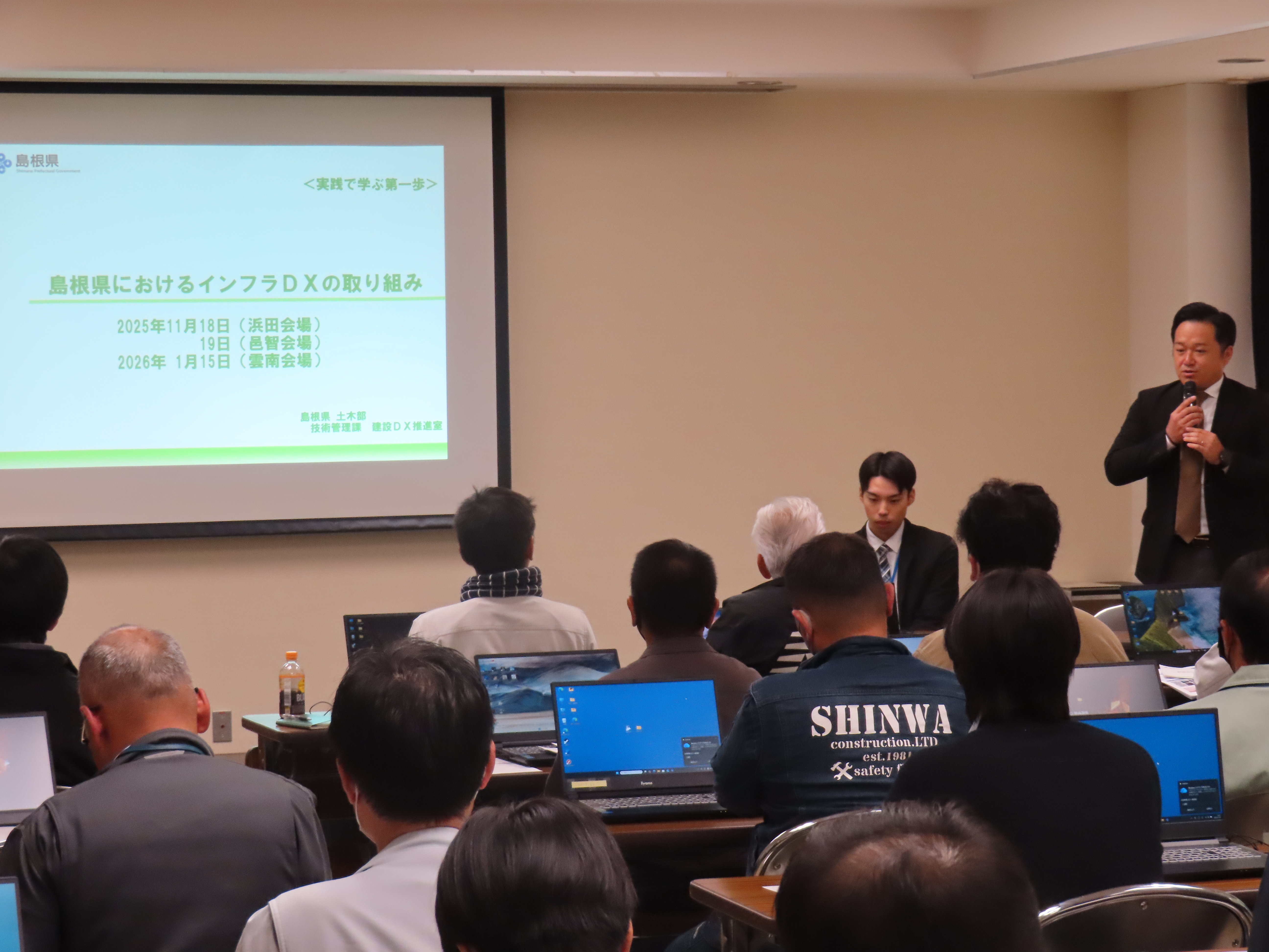 島根県と一般社団法人島根県建設業協会青年部会の共催による、標題の研修会が、先般川本合同庁舎で開催をされました。