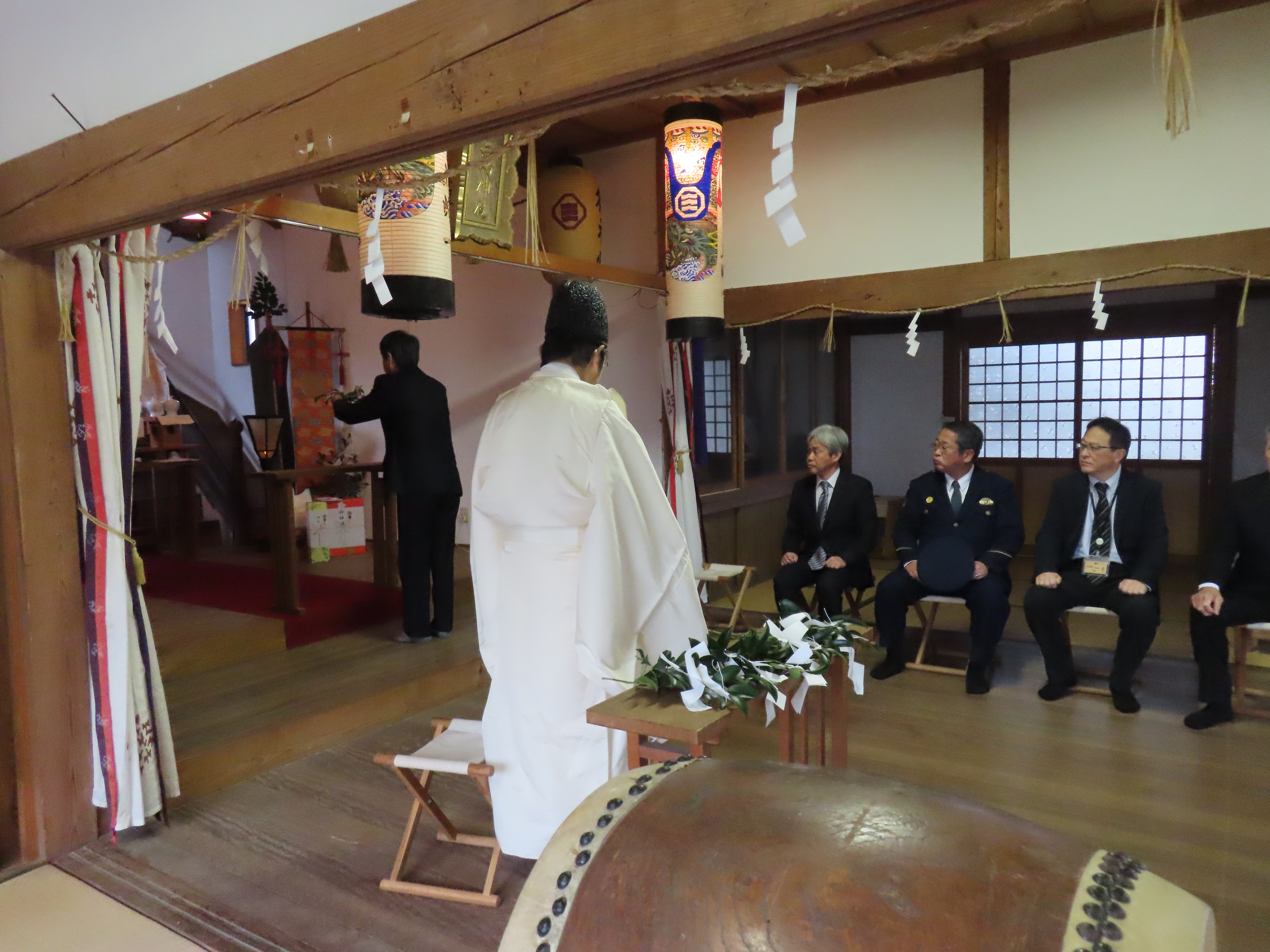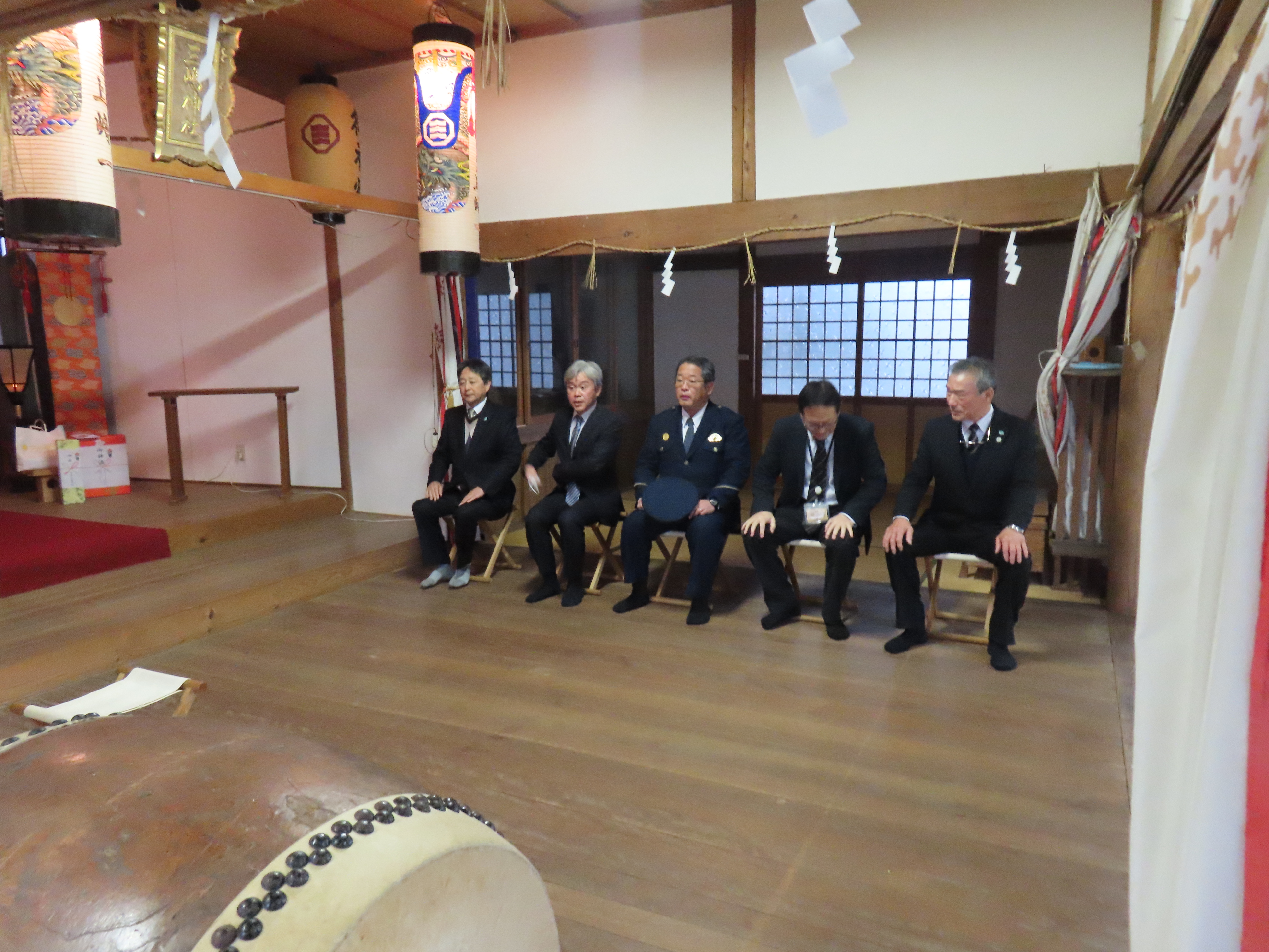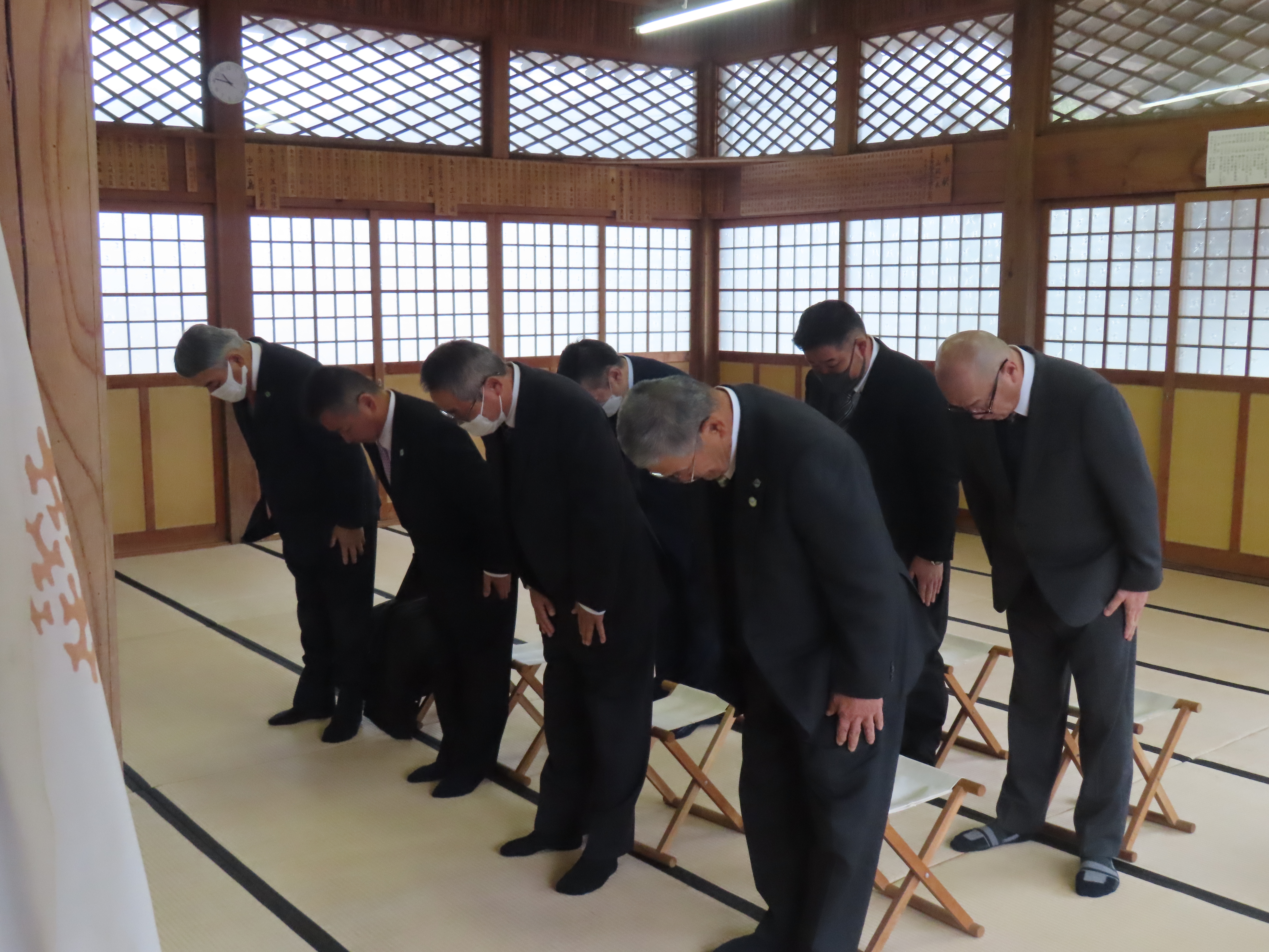 当日は、ご来賓として浜田労働基準監督署の森下署長様、川本警察署の岩垣署長様、県央県土整備事務所の土屋所長様のご臨席を戴き、副分会長・安全委員長・安全指導者が参列し、全会員企業36社(準会員含)の一年間の工事無災害を祈願致しました。