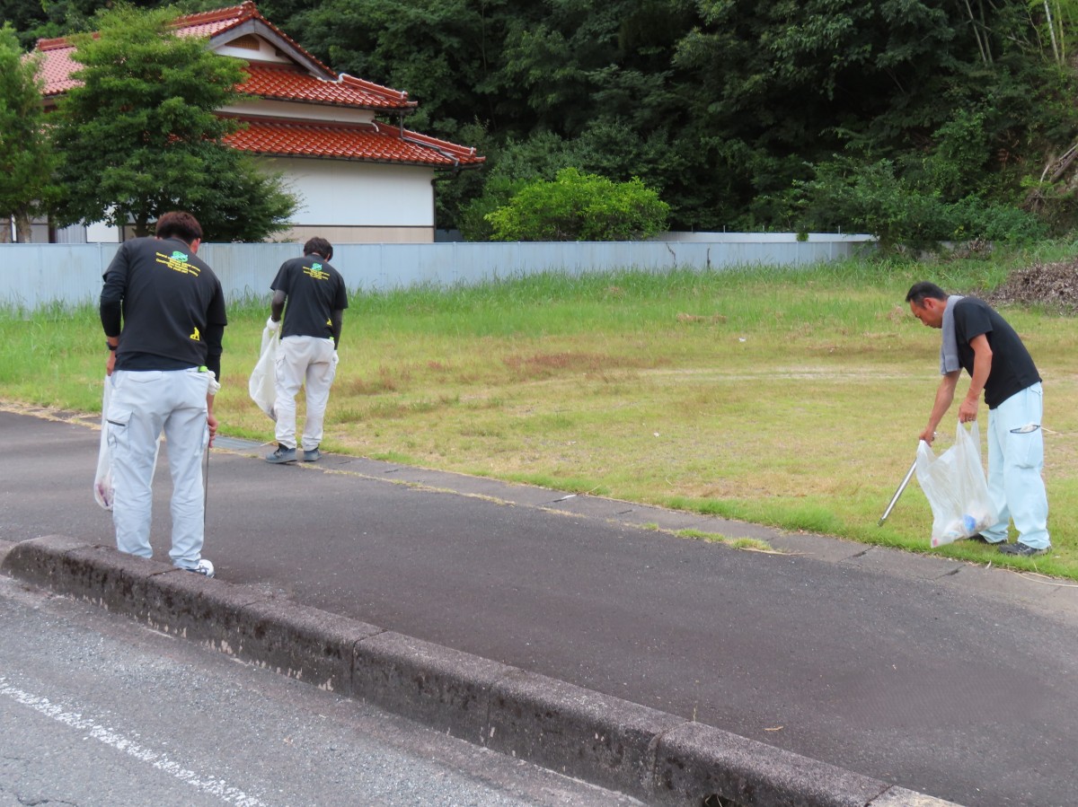 県央県土整備事務所(土屋所長)では、8月10日の「道の日」にちなんで、道路の利用者のマナー向上を啓発し、もって道路の良好な維持管理に資することを目的とし、毎年道路の空き缶等のゴミを拾う清掃活動を行っております。当協会の青年部会(上原部会長他11名)では、この目的に賛同し、本年も「仁摩邑南線3.9㎞」で清掃活動を行いました。