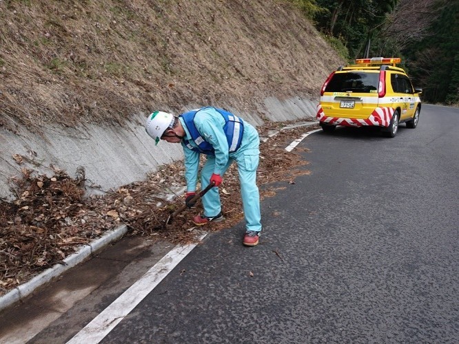 ❖道路パトロール業務委託では、専従職員を7名雇用し、年間240日間昼夜問わず邑智郡内の県道を維持・管理に努めております。